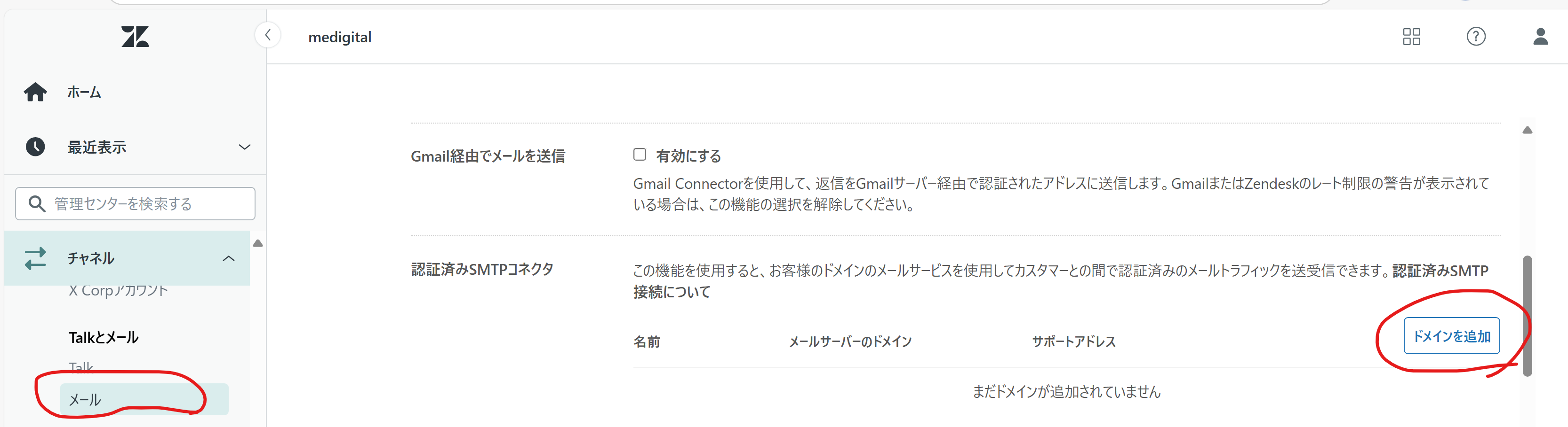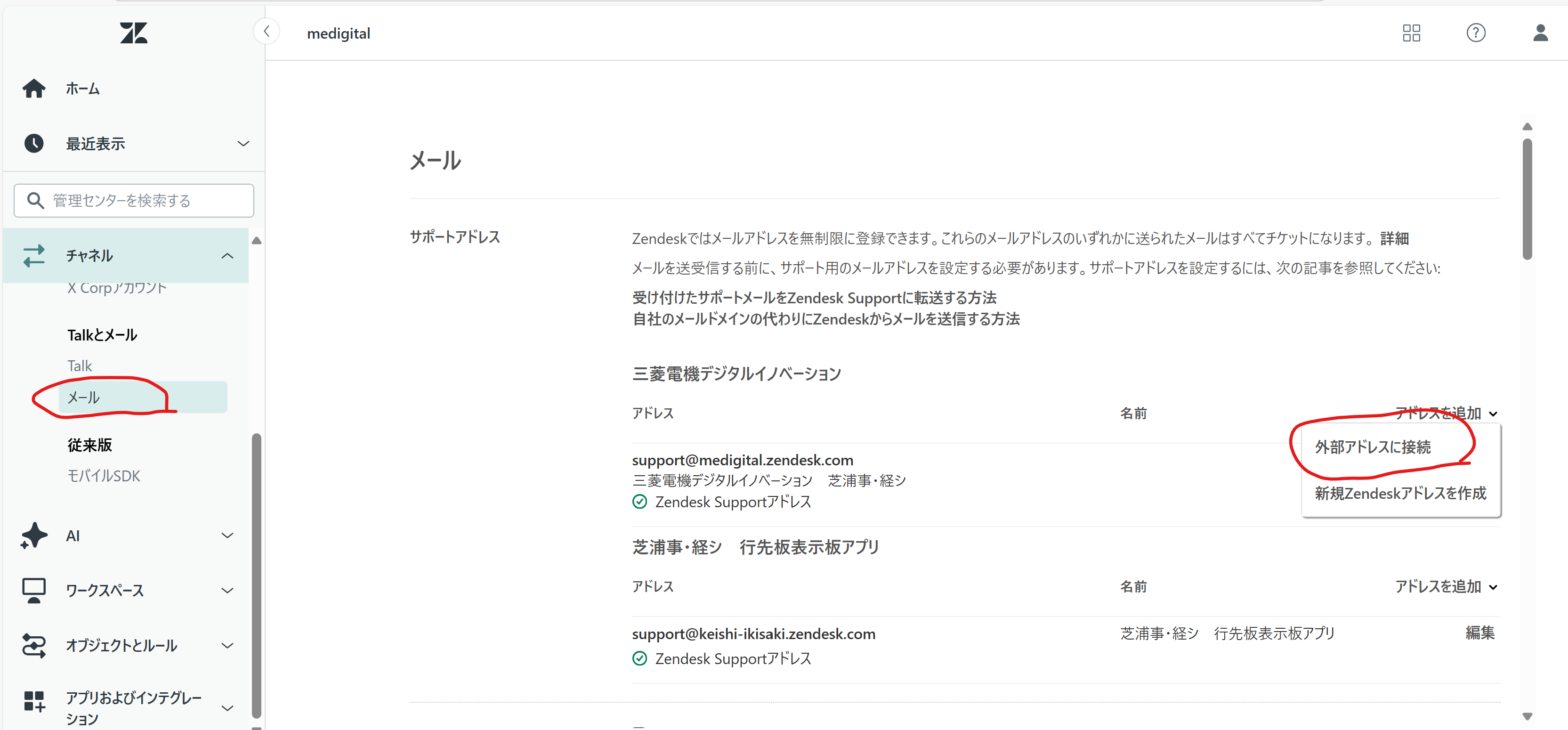 Zendeskでは、以下のメール設定機能がありますが、設定及び使用しないでください。
