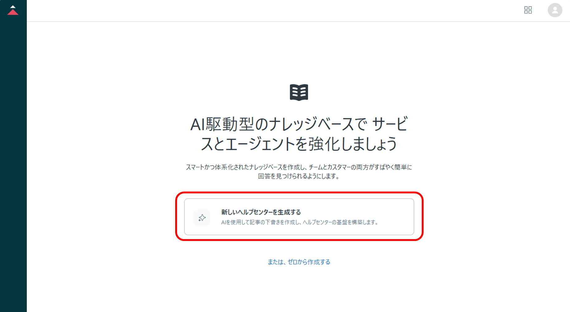 ④[新しいヘルプセンターを生成する]をクリックする。
