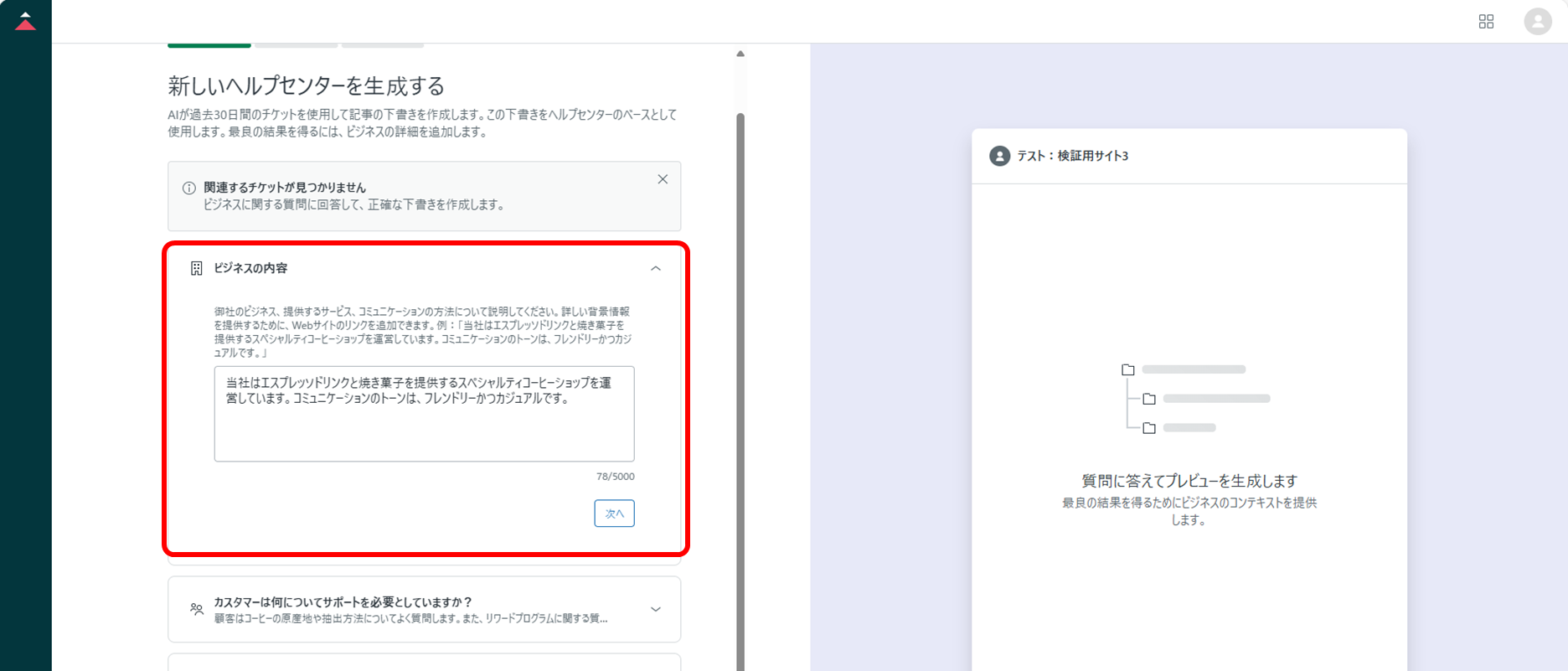 ⑨プレビューの確認をし、[ヘルプセンターを生成]をクリックする。