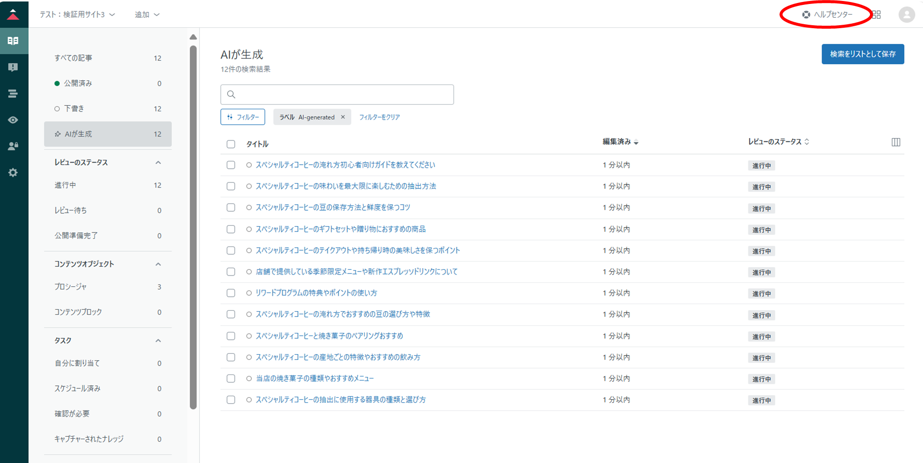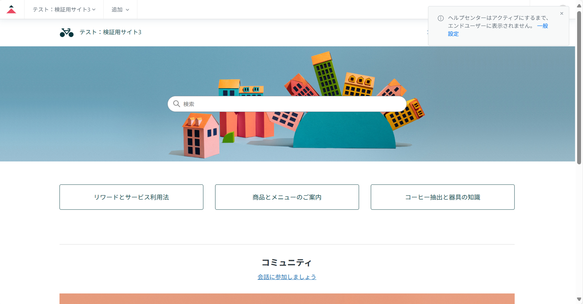 ⑫作成したヘルプセンターが表示されることを確認する。