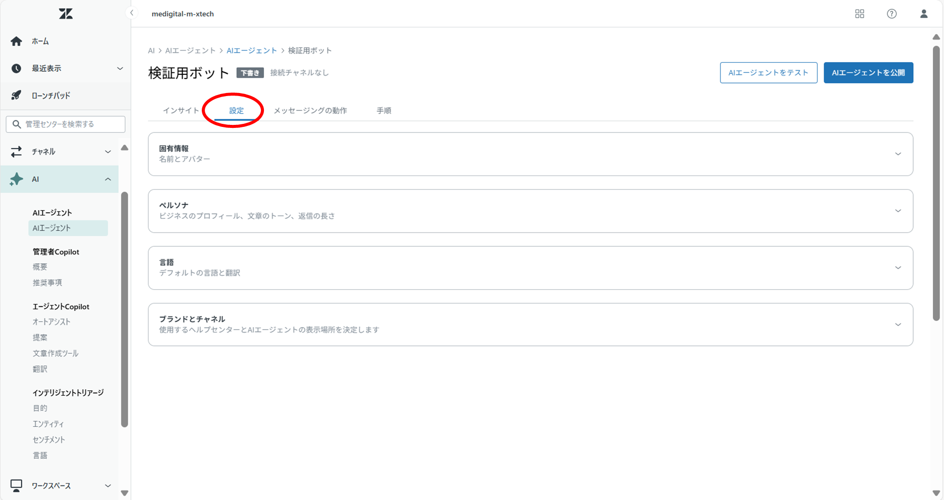 7.チャットボットのヘルプセンタ―表示と回答ボットの設定