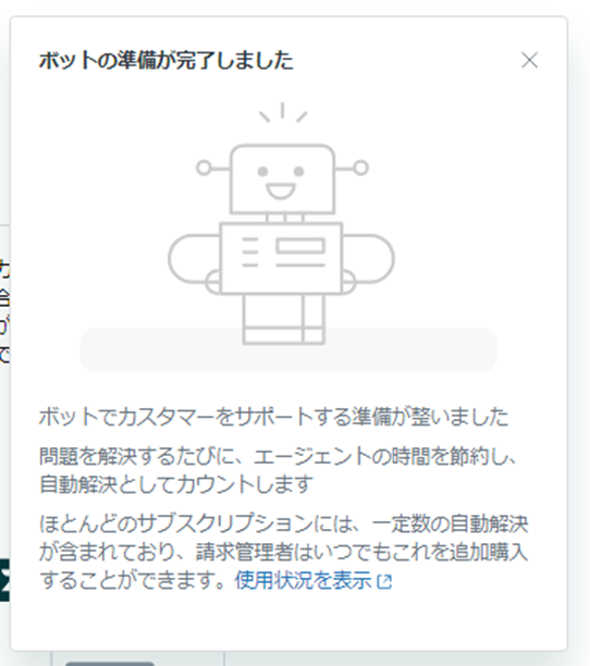 ⑬チャットボットの準備が完了した旨のメッセージが表示される。