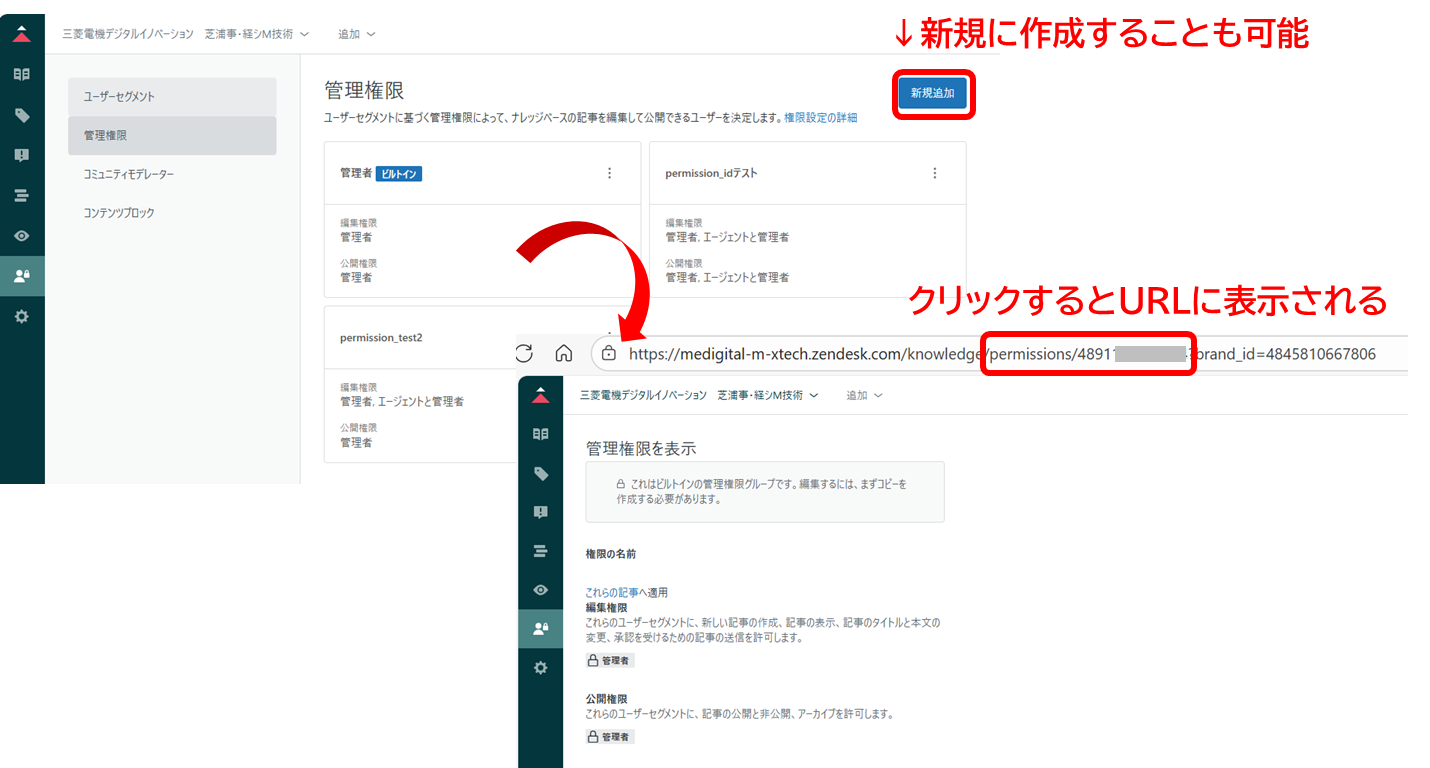 管理権限に表示されたパーミッショングループをクリックするとURL(permissions/の後ろ)に表示される